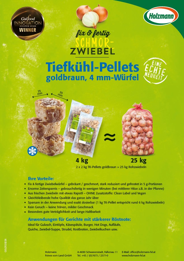 Speziell für Gulasch und Rostbraten werden die Zwiebel-Würfel in einem schonenden Verfahren mit Rapsöl, unter